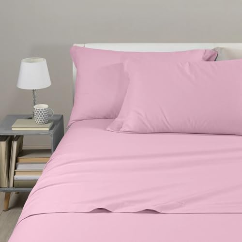 Caleffi - Enfärgad undre lakan flanell | Komfort för bättre sömn | Italiensk design sedan 1962 | Lämplig för mellanstor säng, rosa, flanell, 20186