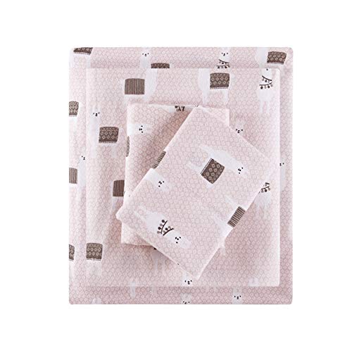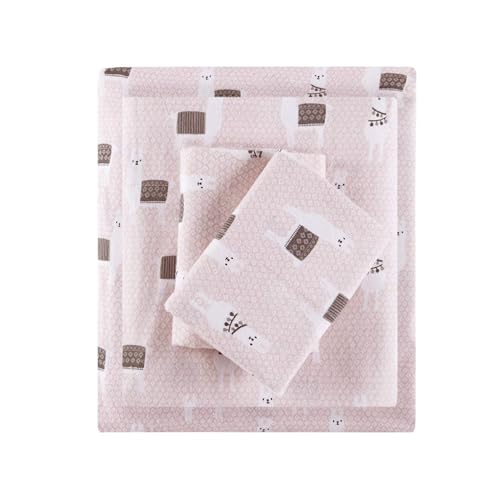 True North by Sleep Philosophy Mysig flanell varmt 100% bomullslakan – nyhetstryck djur stjärnor söt ultramjuk kallt väder sängkläder set, full, rosa pläd 4 delar