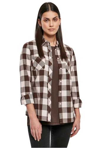 Urban Classics kvinnors damer turnup rutig flanell skjorta, Rosa/brun, L
