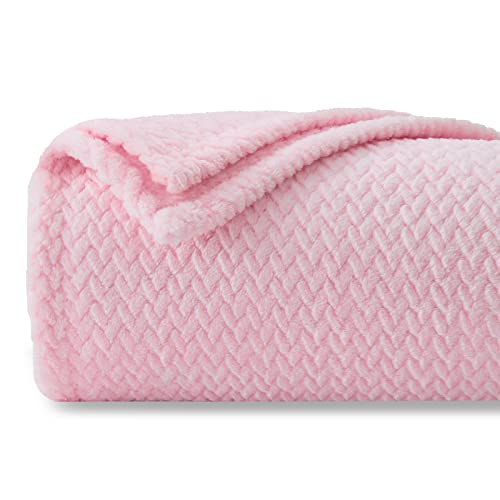 NEWCOSPLAY Flanell fleece filt lätt mjuk hela säsongen användning (888-rosa, överkast (127 x 152 cm)