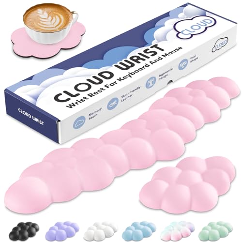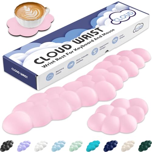 Sushret Cloud Handledsstöd Set, Sött Molnformat Arm- & Handstöd I PU-Läder Med Memory Foam För Tangentbord Och Mus, Perfekt För Kontor, Dator- Eller Gaming-Setup, Rosa