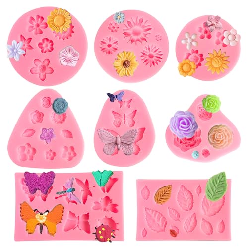 8 St Silikonformar för Kakor, Ljus, Choklad - Rosform, Mini, Söta Formar för Godis, Socker, Gelé - Rosa Fjäril DIY