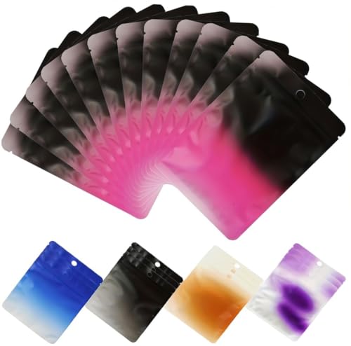 Rimiko 100 st Zip-påsar av Aluminiumfolie, Lufttät Ogenomskinlig Mylar Zip-påse, Återförslutbar och Värmeförslutbar Ziplock-påse för Godis, Kaffebönor och Matförvaring (Svart Rosa Gradient, 10,5x15cm)