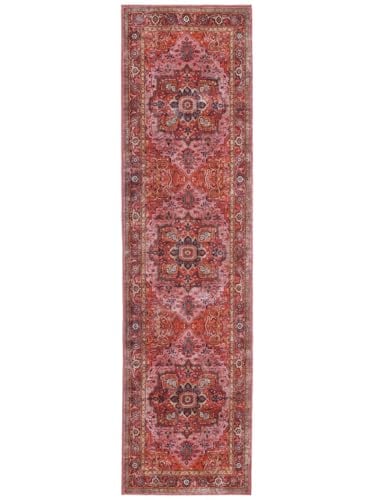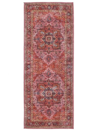 RugVista RugVista Georgia Oriental, Matta, Moderna mattor, 300 x 80 cm, Rektangulär, Kort lugg, Vardagsrum, Sovrum, Kök, Hall, Maskintvätt, oeko_tex_100, Röd/Rosa