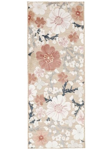 RugVista Cherri, Inomhus & utomhusmatta, Moderna mattor, 200 x 80 cm, Rektangulär, Medellång lugg, Vardagsrum, Kök, Hall, Uteplats, Endast handtvätt, UV-beständig, Beige/Rosa