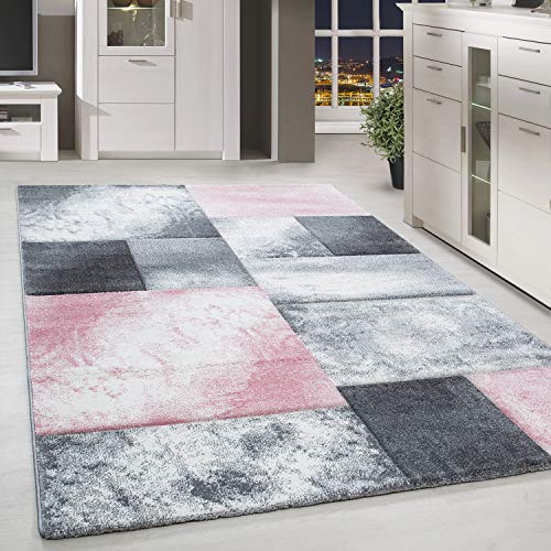 HomebyHome matta vardagsrum 80 x 300 cm löpare hall rosa rutig kontursnitt design – sovrumsmatta kort lugg extra mjuk lättskött mattor för kök matsal – matta kilim