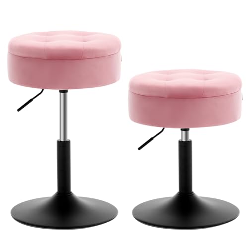 WOLTU pall med förvaringsutrymme set om 2, justerbar höjd i bekväm sammet, stabil metallram, för toalettbord, sovrum, hall, vardagsrum, rosa
