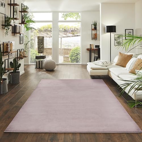 Fashion4Home vardagsrumsmatta – enfärgad matta, vanlig matta för barnrum, sovrum, arbetsrum, kontor, hall och kök – matta med kort lugg, rosa, storlek: 80 x 150 cm