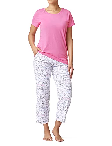 HUE SleepWell kortärmad t-shirt och skimmer pyjamasset för kvinnor – håll dig sval och mysig med Temp Tech, Rosa lemonad - Vårdskript, 3X