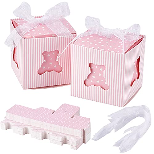 PandaHall 60 set godislådor för nyfödda, björngodislådor viklådor, rosa papper, presentförpackning med band, födelsedagsfest, presentgåva för födelsedag, bröllopsfest (6,4 x 6,4 x 6,4 tum)