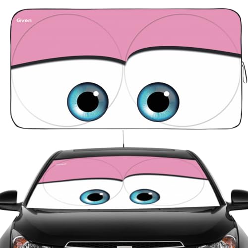 Gven vindruteskärm, bil solskydd för framruta roliga bilögon solskydd solskydd skyddsblock UV-strålar vikbar 210T håll ditt fordon svalt (ögon-rosa, stor)