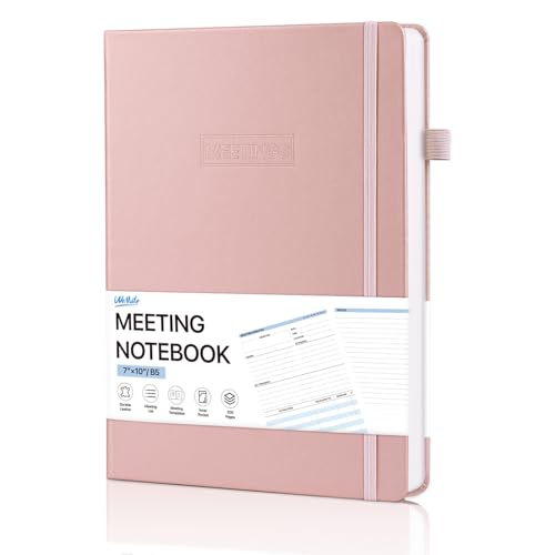 WEMATE inbunden mötesanteckningsbok, B5 arbetsplanerare anteckningsbok med actionartiklar, ta enkelt mötesanteckningar och håll agendor på rätt spår, kalender, indexsida, innerficka, 17 × 25 cm, rosa
