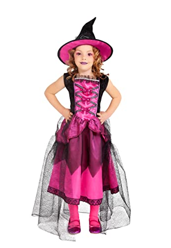 Rubies Moonlight Pink häxa för flickor, rosa klänning, hatt och strumpor, original, halloween, karneval och födelsedag, S8671-M