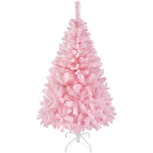 Yaheetech 124 cm konstgjord julgran, rosa, julgran med 208 spetsar och vikbart metallstativ, återanvändbar julgran, konstträd för juldekoration