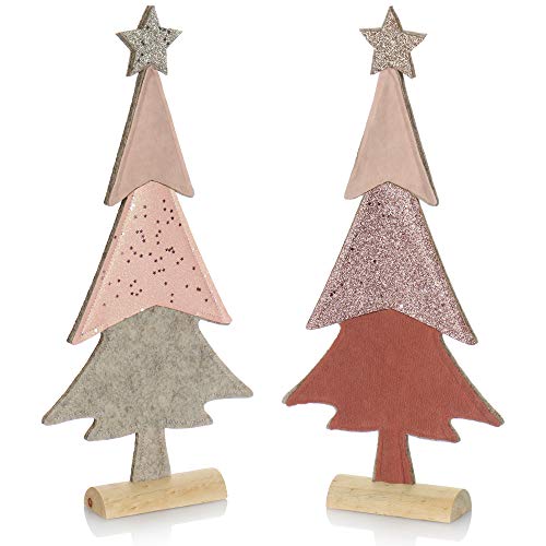 COM-FOUR 2 x rosa stativ för jul – dekorativ gran av filt med fot av massivt trä – rosa julgran [urvalet varierar] (02 stycken gran 37 cm rosa)