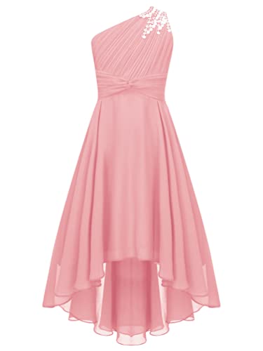 TiaoBug flicka festliga klänningar långa bröllop brudtärnor blomsterflicksklänning en-axel chiffong festklänning avslutningsbal cocktailklänning bal aftonklänning storlek 110–176, Rosa I, 134-140