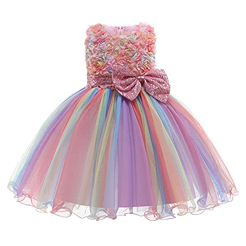 Miipat Prinsessklänning av tyll med paljetter, för baby/flicka, festklänning, ärmlös flickklänning, blomsterflicksklänning, födelsedags- och bröllopsklänning, ROSA, 3-4 År