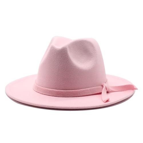 Lanshui accessoarer, damer vinter höst jazzkepsar brett brätte ullfilt Fedora hattar stor storlek Trilby festklänning hatt, Rosa, 59/61 cm