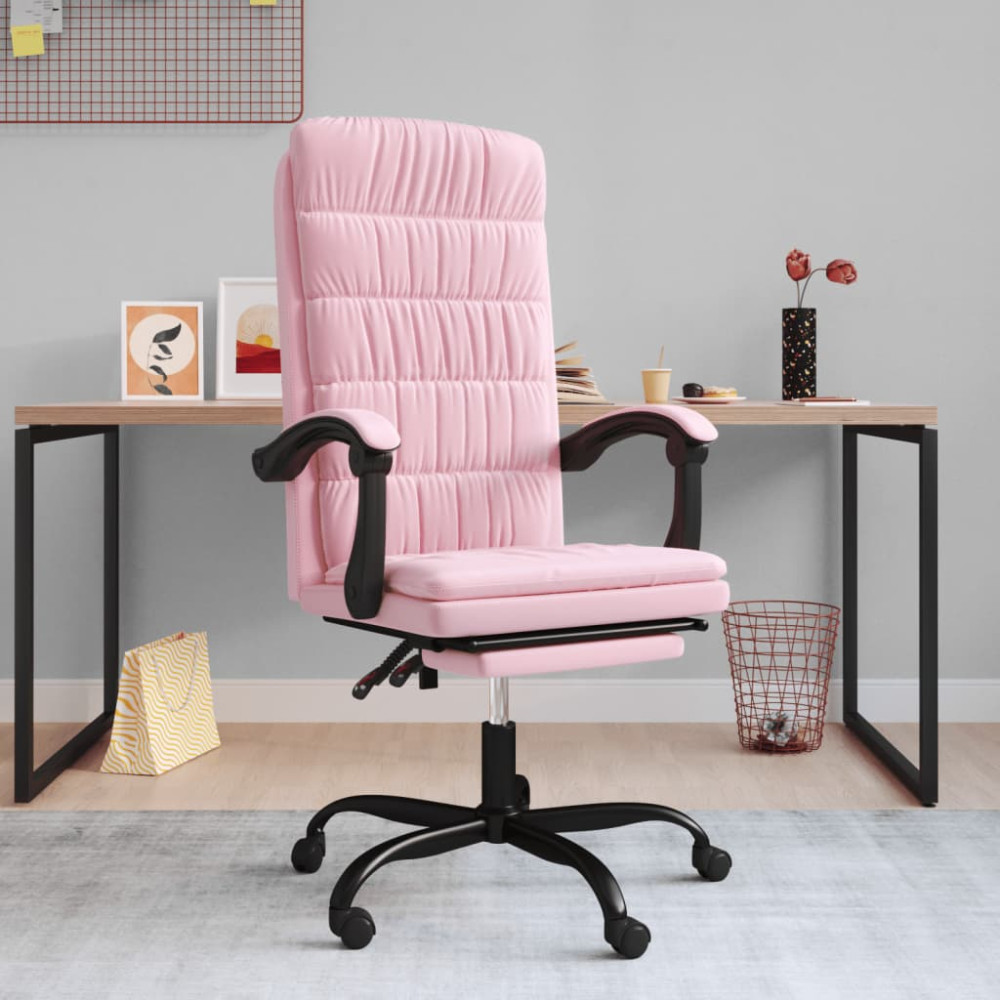 Justerbar kontorsstol i sammet – ergonomisk, rosa, 360 graders vridbar