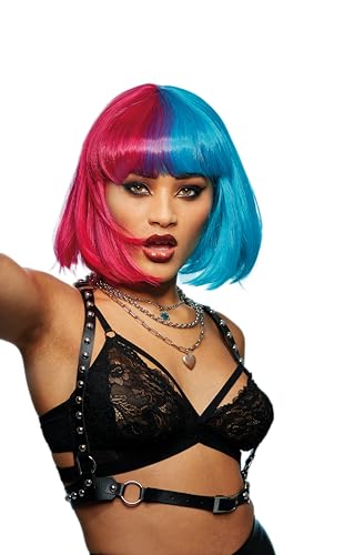 Smiffys Dam Glam docka kostym peruk, blå och rosa, Blå och rosa, One Size