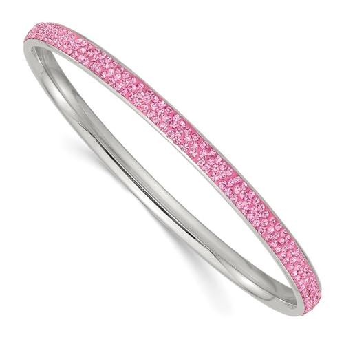 Rostfritt stål Slip på polerad rosa kristall manschett stapelbart armband smycken gåvor för kvinnor