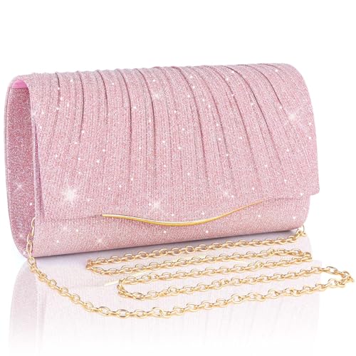 Adiwo Dam aftonväskor, kvinnor kuvertväska, eleganta glittrande damhandväskor med avtagbar kedja, handtag kväll kuvertväska, lämplig för bröllopsfest bal, bra present till kvinnor, Rosa