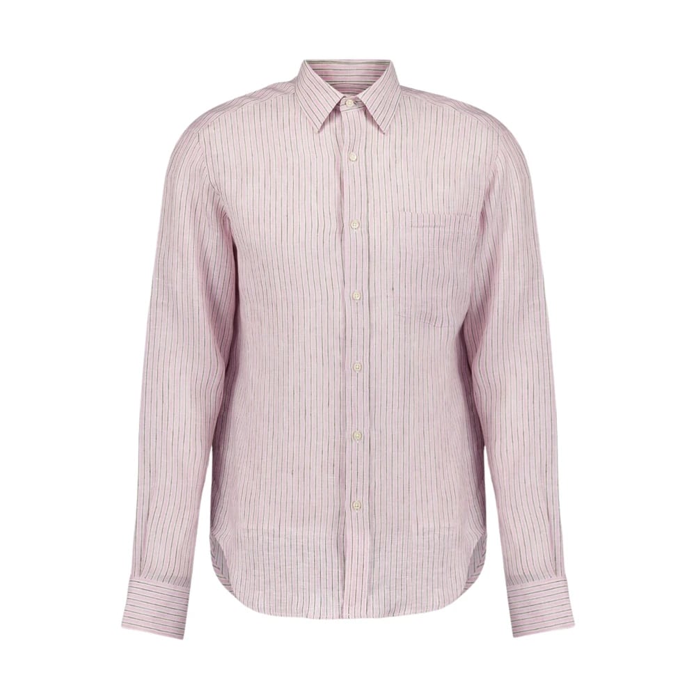 120% Lino, Skjortor , Herr, L, Linne, Rosa Randig Linneskjorta