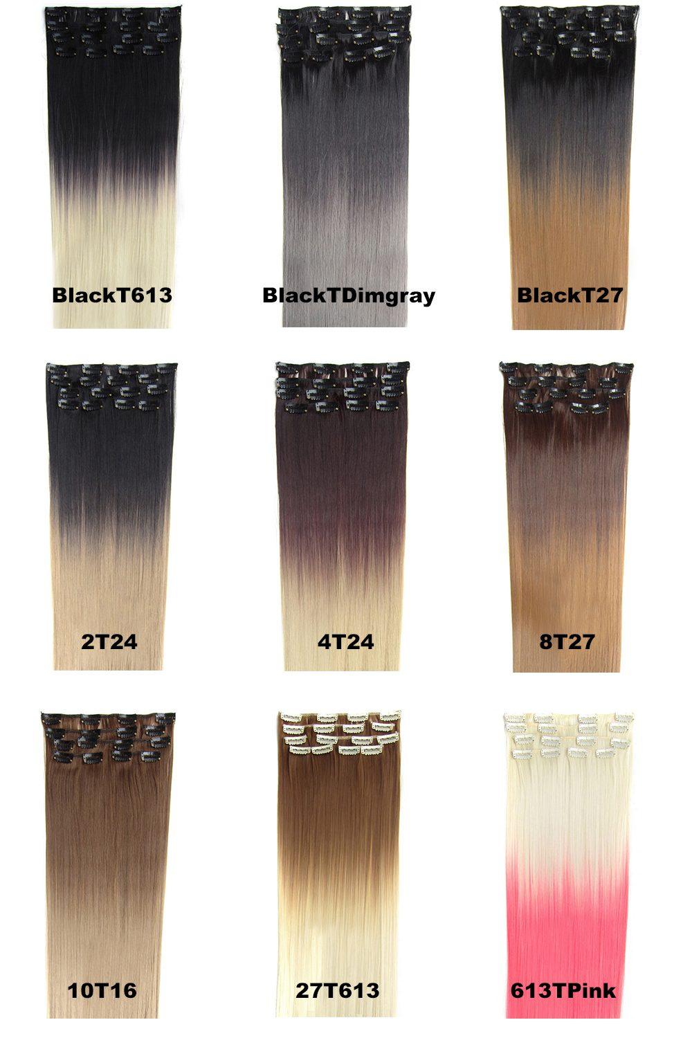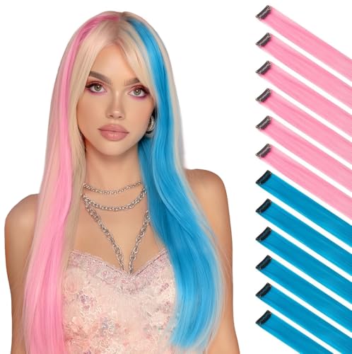 FESHFEN Färgat Hårförlängning, 12 ST Rosa & Blå Hårstycke för Tjejer Parti Markera Färgrikt Rakt Clip i Färg Löshår Klipp i Hårbit Syntetiska Rak Förlängningar för Kvinnor, 55 cm