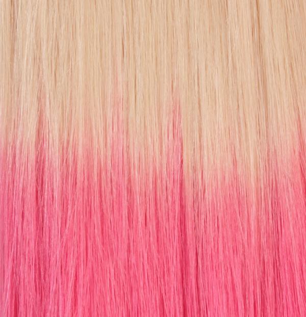 Löshår rakt clip on 7 delar dip dye (Ljusblond & Rosa #613TPink)