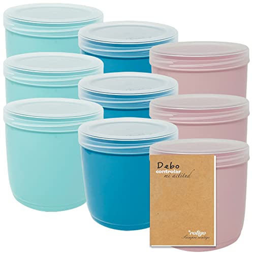 Codil Plastmatmatsats, återanvändbara små runda tapers, BPA-fri, behållare med lock, diskmaskinsäker mikrovågsugn och frys (rosa grön och blå, 9 x 0,6 L)