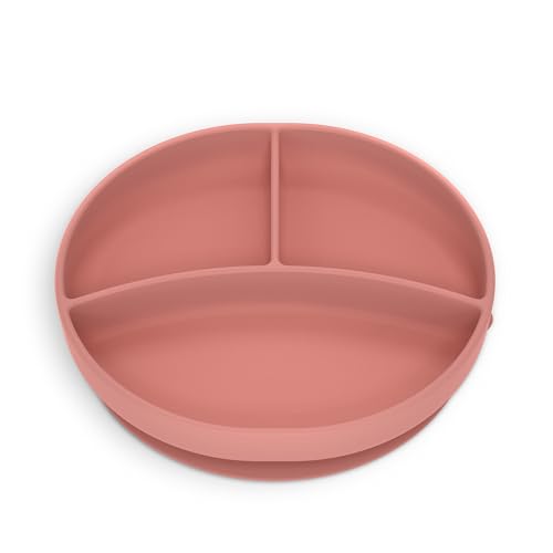 Suavinex, Babytallrik med sugkopp, i silikon med fack, anti-spill, för kompletterande utfodring och EME, kompatibel med diskmaskin och mikrovågsugn, +6 månader, rosa