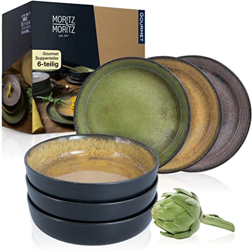 Moritz & Moritz Set med 6 gul-grön-rosa sopptallrikar för 6 personer som tål diskmaskin och mikrovågsugn