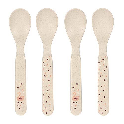 LÄSSIG Barnskedset (4 delar) melamin BPA diskmaskin och mikrovågsugn sked set liten vatten svan rosa