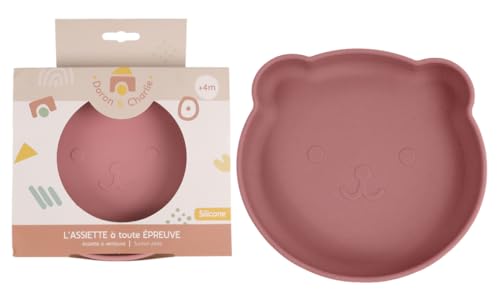 DORON & CHARLIE - sopptallrik - barnmåltid - 056720 - rosa - silikon - sugkopp - kompatibel med mikrovågsugn - tvättmaskin - lätt att rengöra - babytallrik - från 6 månader