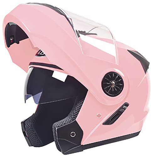 Motorcykel heltäckande ansiktshjälm med dubbelt visir DOT/ECE-godkänd motorcykel moped gatucykel racing kraschhjälm för vuxna män och kvinnor, rosa, en storlek