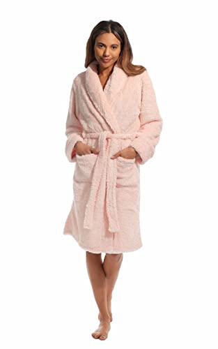 Light & Shade Vacker kvinna supermjuk korall fleece Lami Wellsoft morgonrock morgonrock, rosa, small/medium