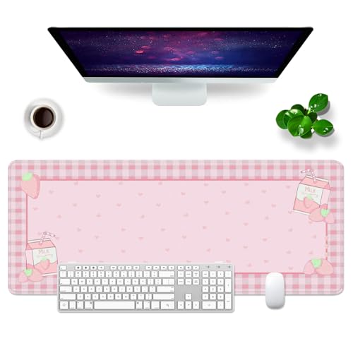 Rosa Kawaii flickig söt spelmusmatta, lång utökad XXL musmatta, extra stor skrivbordsunderlägg tangentbordsmatta för arbete spel kontor hem, 91 x 40 cm