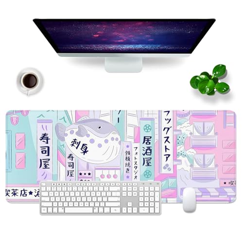 Rosa Japan skrivbordsdyna anime spel grön musmatta stor musmatta för skrivbord dator pc laptop kontorsdekor för kvinnor, anime musmatta sydda kanter halkfri gummimatta skrivbordsdyna (80 x 40 cm)