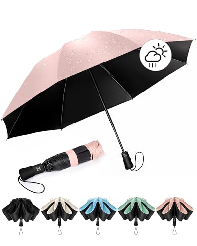Chakipee Paraply stort stormsäkert kompakt resa för kvinnor och män – automatiskt upp och ner på fickparaply bärbart UV-paraply, fickparaplyer svart 210T beläggning 97 cm spännvidd 8 spröt, ROSA, 97
