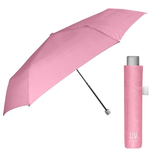 Sykeroutparaply, miniparaply, fickparaplyer, kompakt mini vikbart reseparaply litet med fodral, UV-paraply, ROSA, Kompakt (ca. 40-45 cm Durchmesser)
