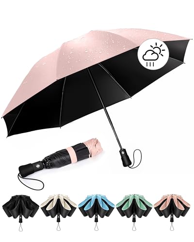 Chakipee Omvänt hopfällbart paraply kompakt anti-UV- damparaply automatiskt vindbeständigt, bärbara reseparaplyer, 210T-beläggning, 97 cm räckvidd, 8 sektioner, rosa, 108cm