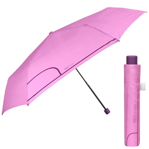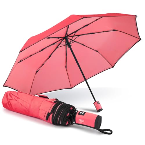 PERLETTI Paraply Tåligt Vindsäkert Enfärgade Dam - Reseparaply med Automatisk öppning Stängning - Miniparaply Snabbtorkande Regnskydd Kompakt - Diameter 98 cm (Rosa)