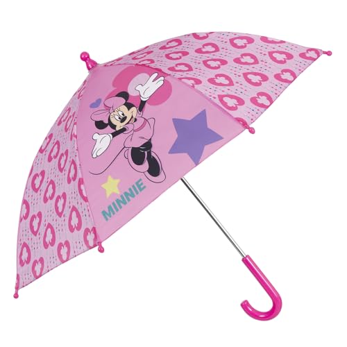 Paraply Mimmi Pigg Barn 3 4 5 År Rosa - Disney Promenadparaply Minnie Mouse Flicka med Manuell Öppning - Paraply för Flickor Vindbeständig Regntät Litet - Diameter 66 cm - Perletti (Minnie Hjärtan)