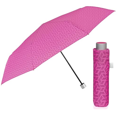 PERLETTI Paraply Tåligt Vindsäkert Enfärgade Dam - Reseparaply med Automatisk öppning Stängning - Miniparaply Snabbtorkande Regnskydd Kompakt - Diameter 98 cm (Geometrisk Rosa)