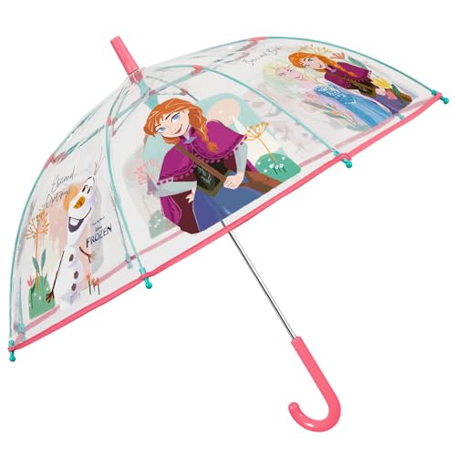 Disney Frozen Transparent Promenadparaply för Barn - Mini Paraply Elsa Anna Olaf Manuell Öppning - Vindsäker Kulpolskärm Paraply Flickor 3 4 5 År - Diameter 69 cm - Perletti (Rosa Handtag Manuell)