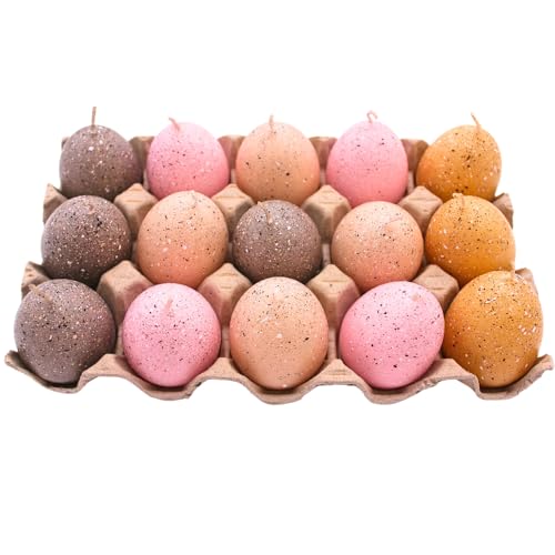 Dekohjälte24 påskäggljus i set om 15 påskljus som påskägg, pastellfärger rosa, storlek H/Ø 6,5 x 4 cm, 15-pack