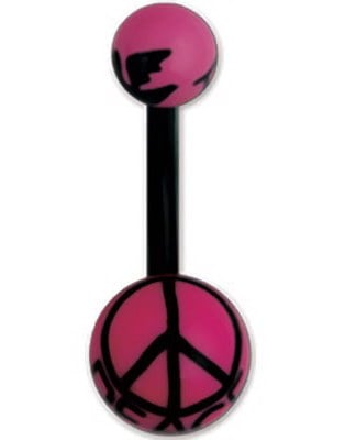 Navelpiercing i Rosa och Svart med Peace Tecken