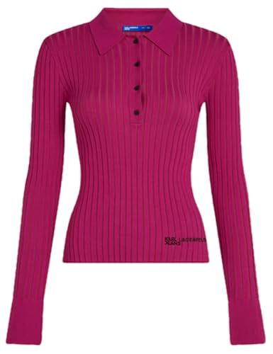 Karl Lagerfeld jeans, kvinnor, långärmad stickad polotröja, Very Berry, S, ROSA, S