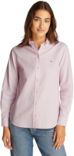 Tommy Jeans dam TJW REG Oxford tröja DW0DW19890 L/S skjorta, rosa (rosa/vit randig), XL, Rosa (Rosa/vit randig), XL