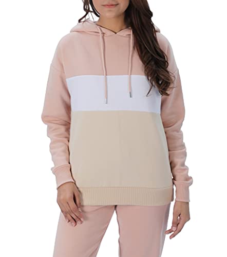M17 dam dam återvinna randig färg block huvtröja tröja mysig mjuk avslappnad huvtröja tröja lång ärm jacka tröja tröja tröja dam, Blush rosa, S